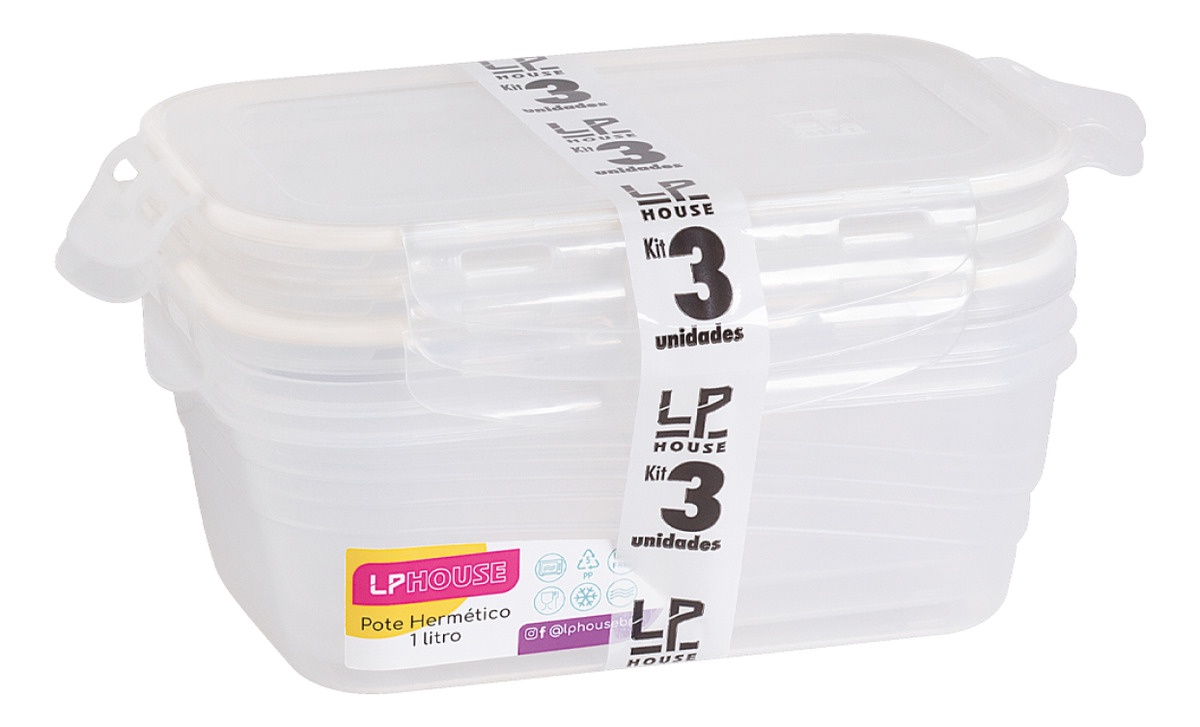CONJUNTO 3 POTES HERMETICOS 1000ML - LP HOUSE.