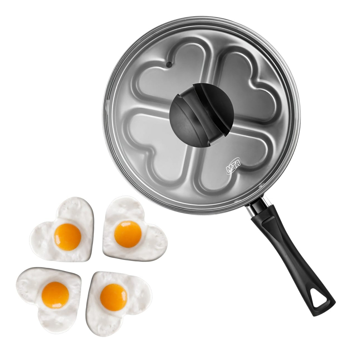 Frigideira Antiaderente com Tampa para 4 Ovos Pochê - Formato Coração - MTA