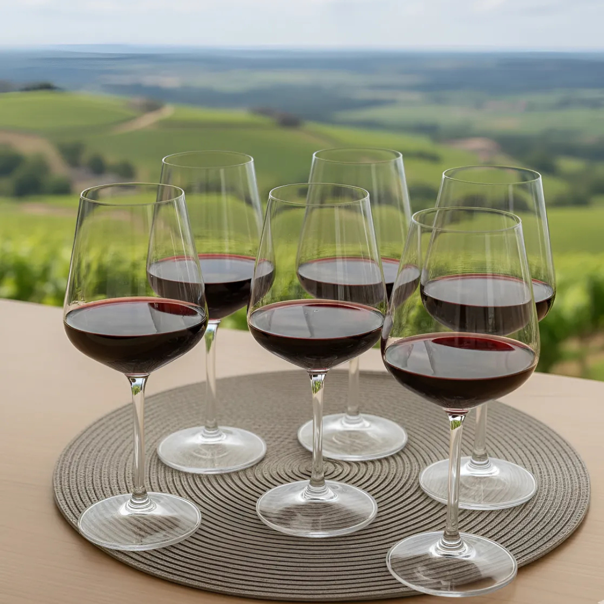 Produzidas em cristal de alta qualidade, as taças oferecem transparência impecável, brilho intenso e excelente resistência, realçando a cor do vinho e elevando a experiência sensorial em cada gole.
