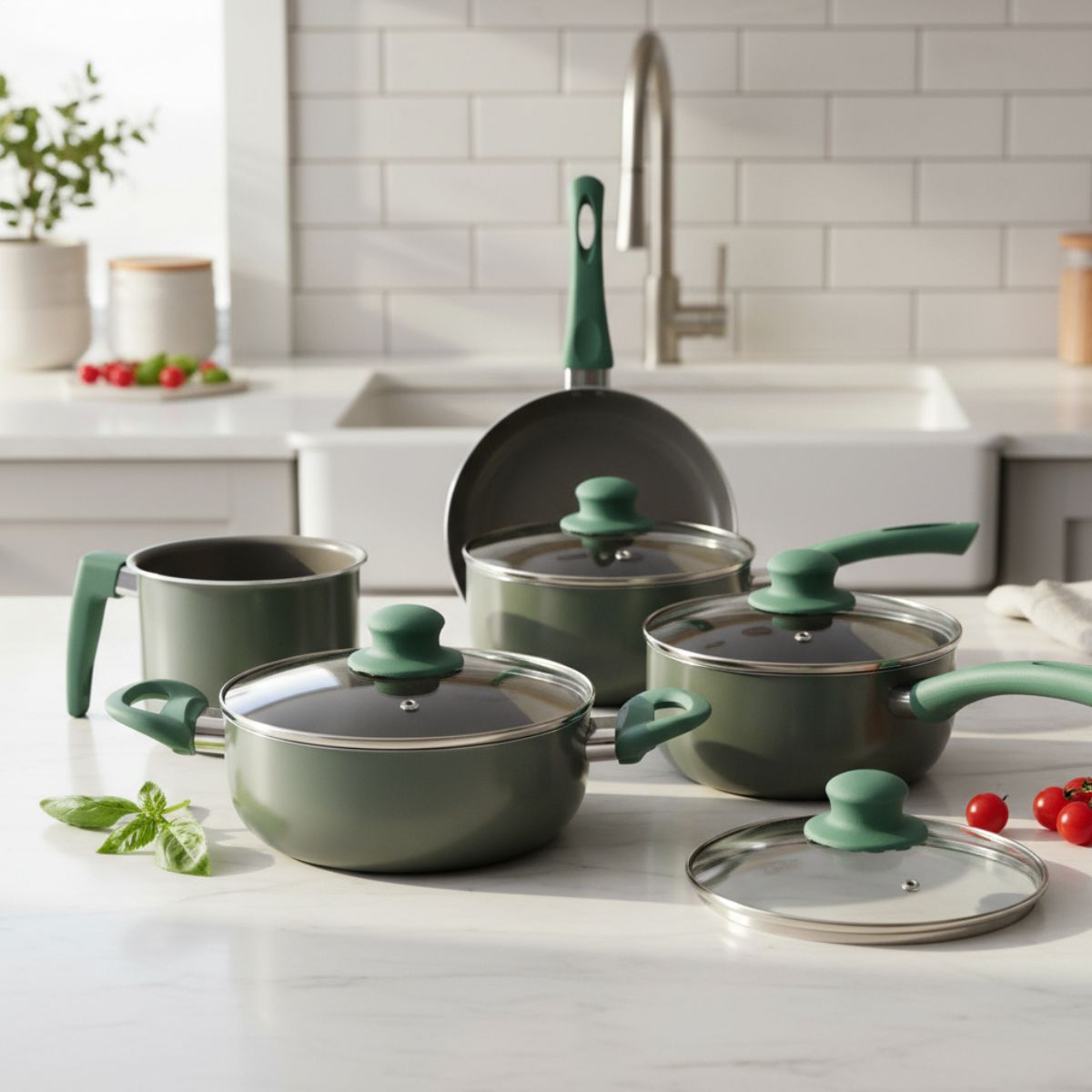 Transforme sua cozinha com o jogo de panelas Hauskraft Milan Verde 5 peças Moderno, funcional e compatível com fogão por indução e convencional a gás.
