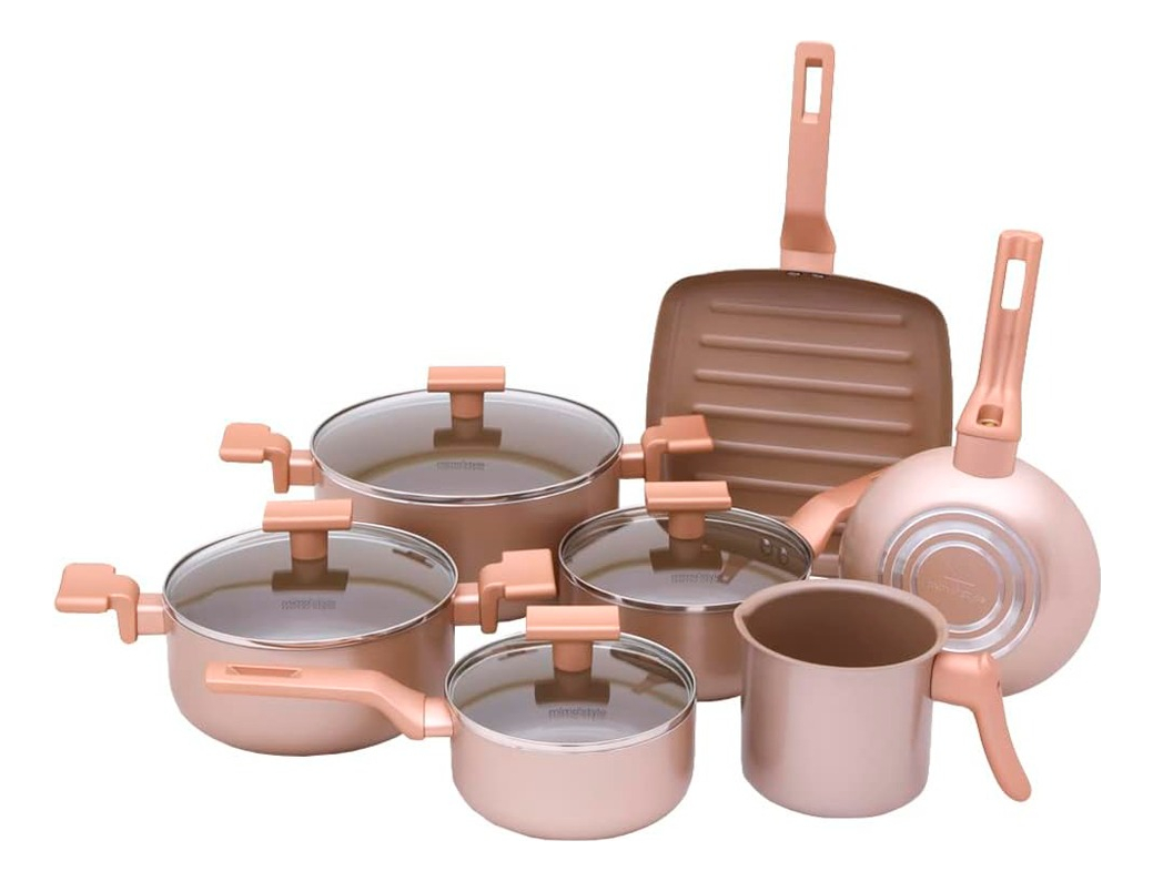 O conjunto de panelas da linha Sartin Cook Champanhe é composto por duas panelas com tampa, duas caçarolas com tampa, uma frigideira, um grill e uma leiteira. Os itens que compõe o conjunto são práticos para que você prepare refeições completas. O material permite que você cozinhe os alimentos em fogo baixo ou médio e ainda mantém as refeições aquecidas por mais tempo, para que você consiga servir e comer longas refeições com as pessoas queridas. Extremamente prático e funcional, com o conjunto formado é possível preparar suas receitas preferidas, podendo ser utilizado para fazer diversos tipos e gramaturas de alimentos. Itens práticos que ocupam pouco espaço em seu armário, também foram desenvolvidos para não permitir que os alimentos grudem, além de serem livres de metais pesados e elementos prejudiciais à saúde, com classificação A (ótima) no INMETRO.