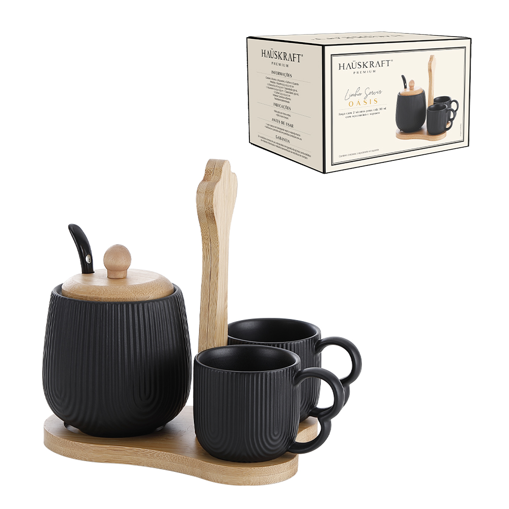 Transforme sua pausa para o café em um momento ainda mais especial com o Jogo de Xícaras Oásis. Composto por 2 xícaras de 90ml, um açucareiro com tampa e colher, além de um elegante suporte em bambu, este conjunto une beleza, funcionalidade e charme natural.