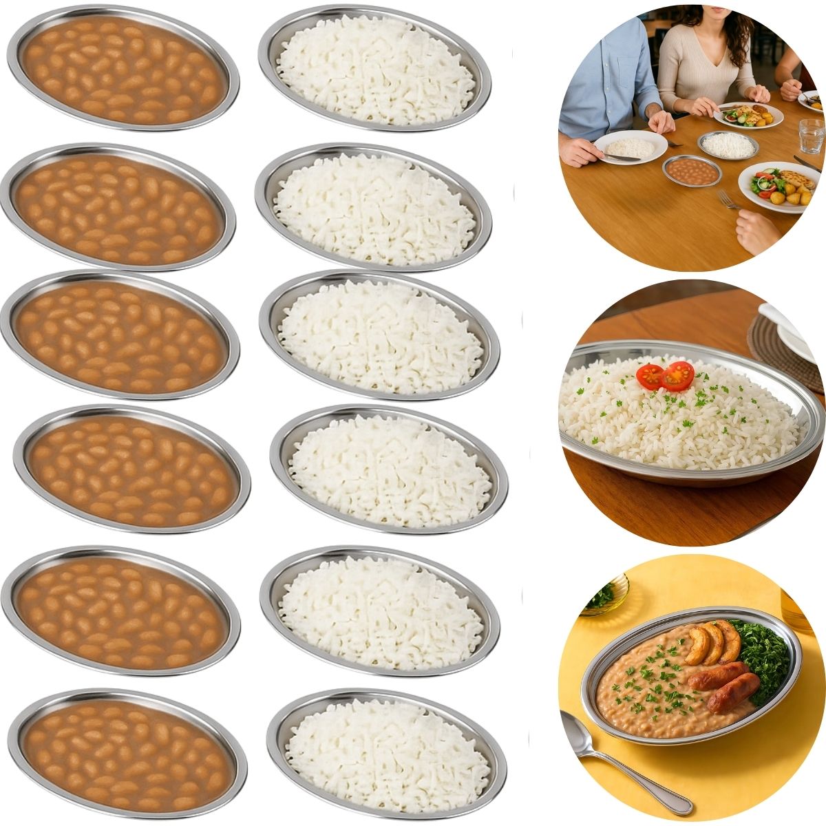 Kit 12 Travessas Oval Inox Funda 20Cm Alta Qualidade Porção Arroz Feijão Salada