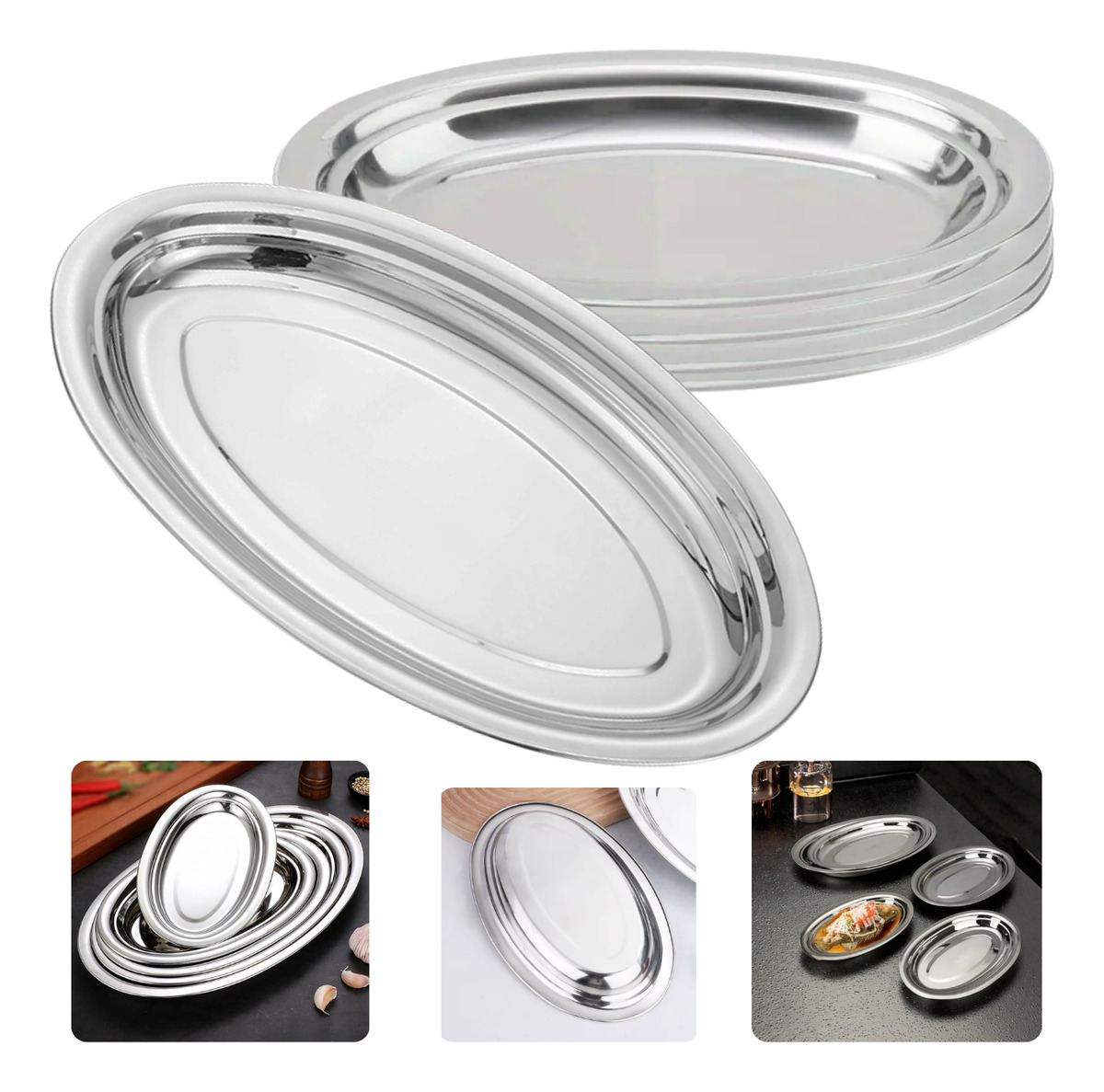 Kit 12 Travessas Oval Inox Funda 26 cm – Bandejas para Porções, Bar e Restaurante