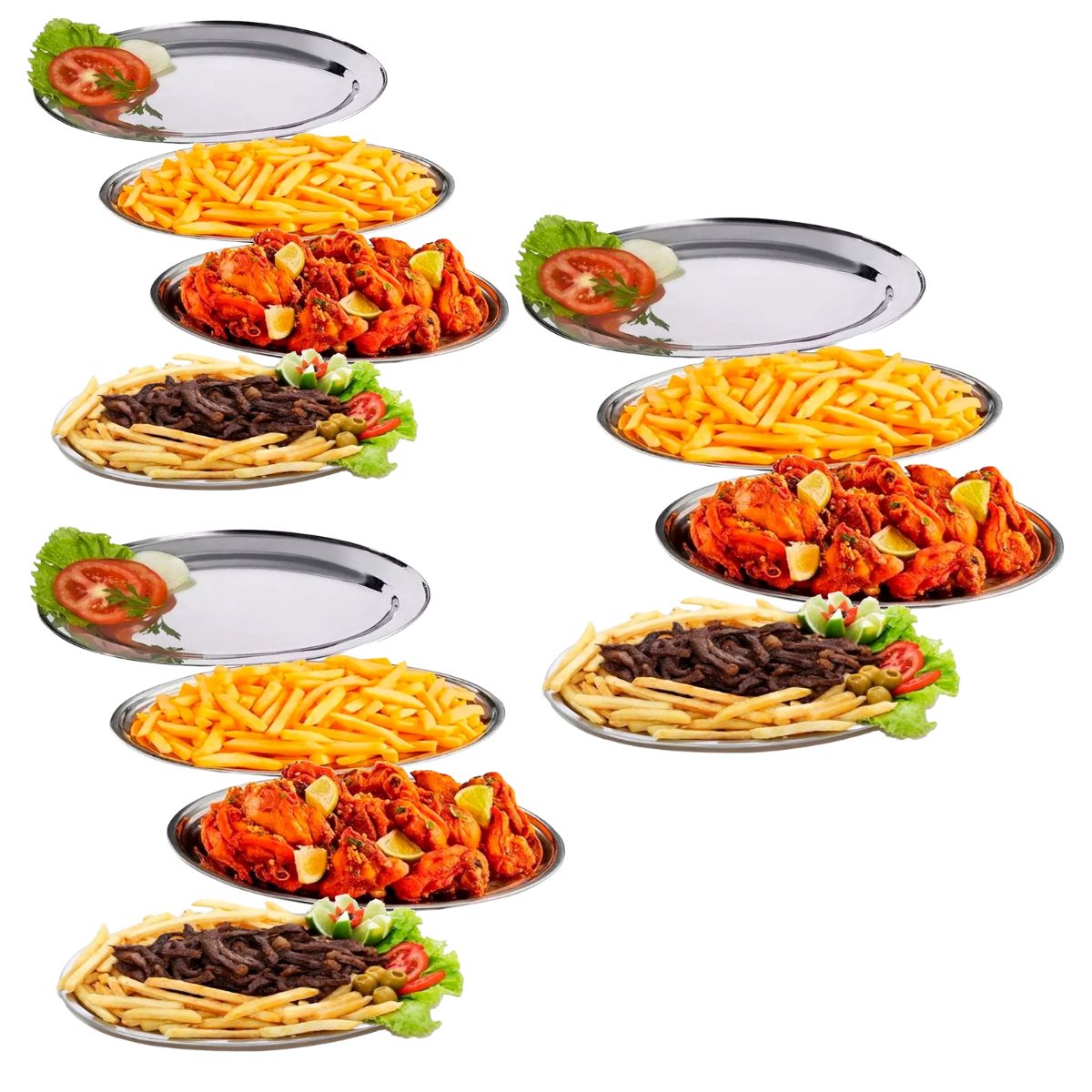 Kit 12 Travessas Oval Inox Rasa 22cm Bandejas para Porções, Bar e Restaurante