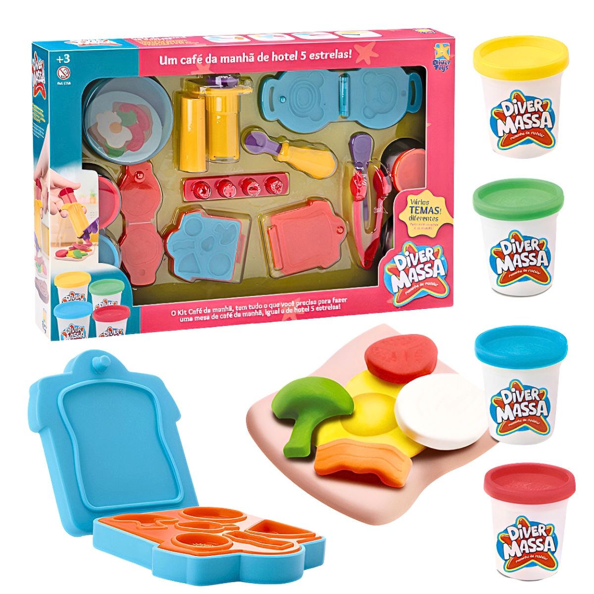 Kit Café da Manhã da Divertoys é a brincadeira perfeita para crianças a partir de 3 anos que adoram soltar a imaginação e brincar de chef. Com este kit completo, os pequenos podem montar uma deliciosa mesa de café da manhã e criar diversas combinações de alimentos com massinha colorida e segura.