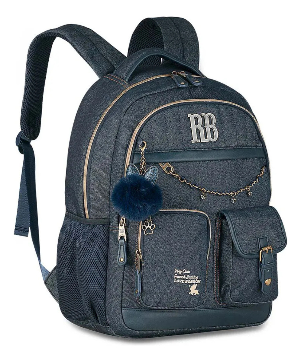 Mochila Rebecca Bonbon Denim Vintage 17,5” – Estilo e Funcionalidade para o Dia a Dia