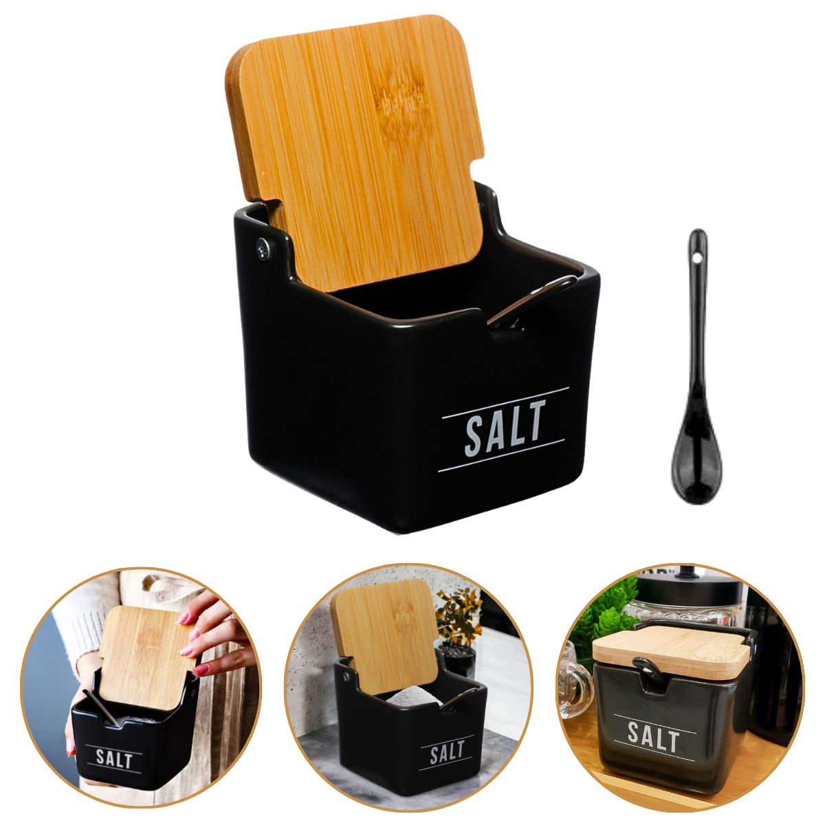 Para maior conveniência, o saleiro vem com uma colher feita de porcelana, perfeita para servir a quantidade ideal de sal ou outros condimentos. A colher se encaixa perfeitamente no recipiente, garantindo que você sempre a tenha à mão quando precisar.